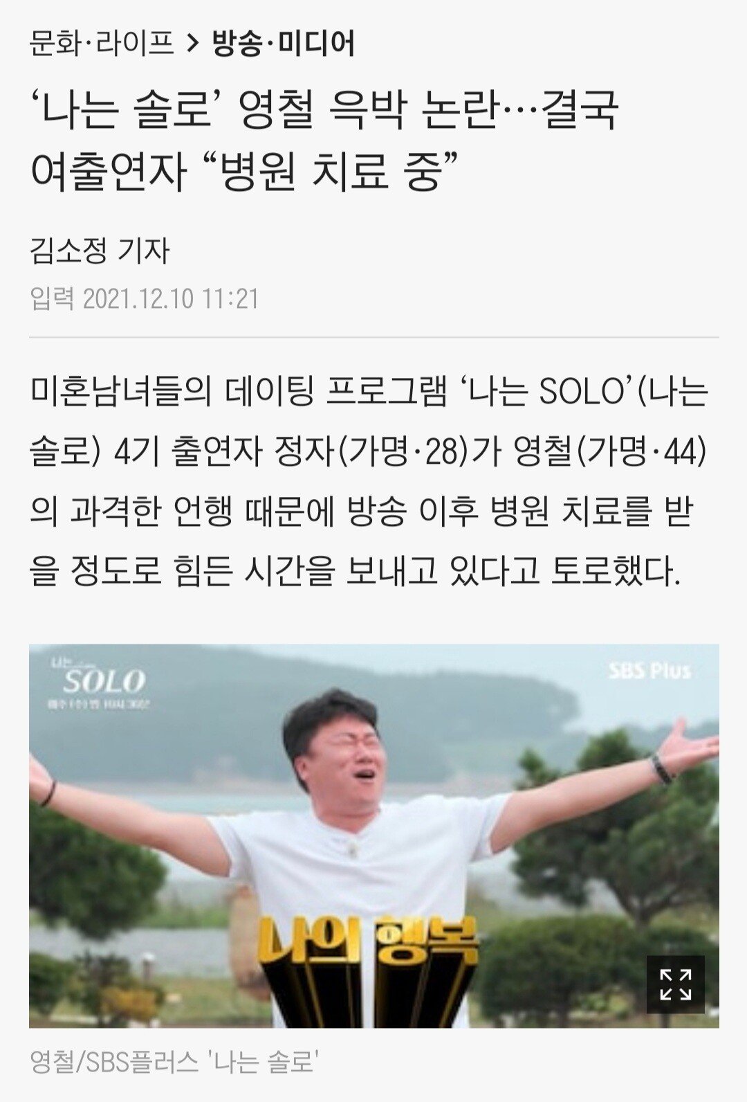 12월 8일 방송되었던 '나는 솔로'의 에피소드에서는 영철(42, 가명)이라는 남성이 자신을 포함한 3명의 남성 출연자와 데이트한 여성 출연자 정자(28)에 대해 비꼬는 장면이 나왔는데요.