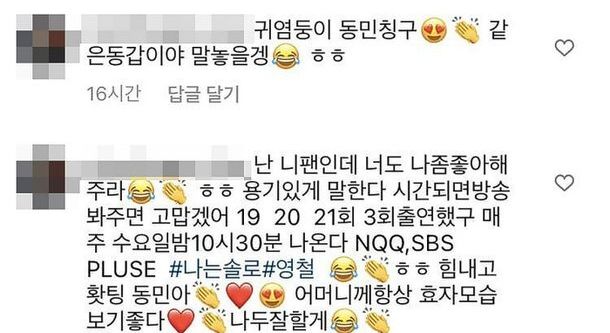 영철은 타인을 진지하게 배려하지도 않으면서 "사랑은 마음으로 만들어진다"고 댓글을 달았는데요. 영철의 나이는 현재 44세입니다. 그런데 위 멘트는 중학생도 하지 않을 것 같은 수준입니다.